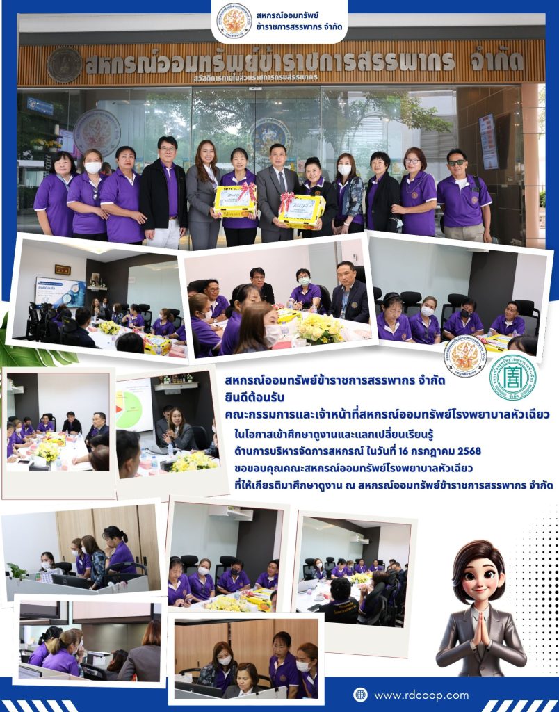 ในวันที่ 16 กรกฎาคม 2568ขอขอบคุณคณะสหกรณ์ออมทรัพย์โรงพยาบาลหัวเฉียวที่ให้เกียรติมาศึกษาดูงาน